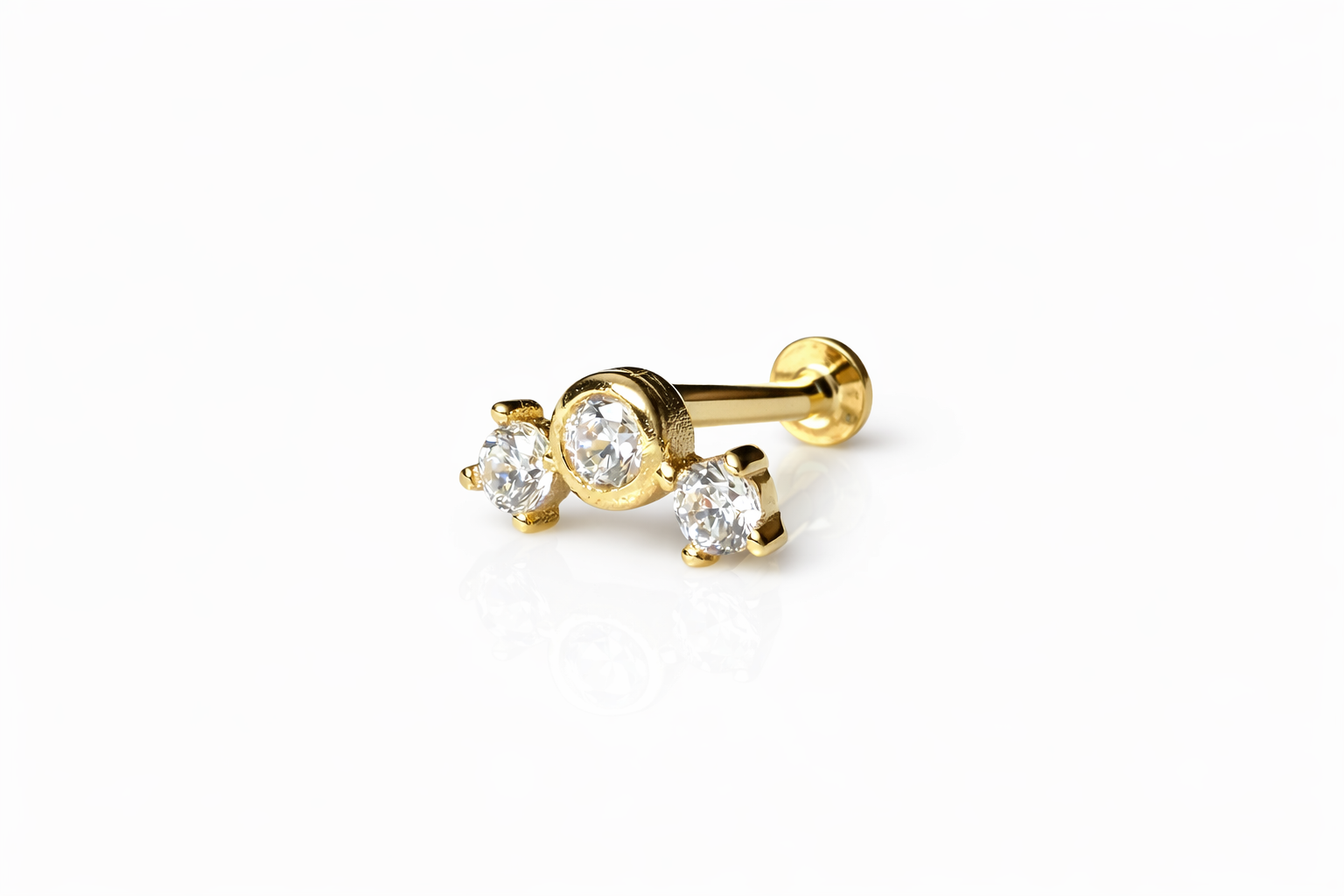 14 Ayar Altın Trio Taşlı Tragus Piercing – Aura Model Helix Uyumlu