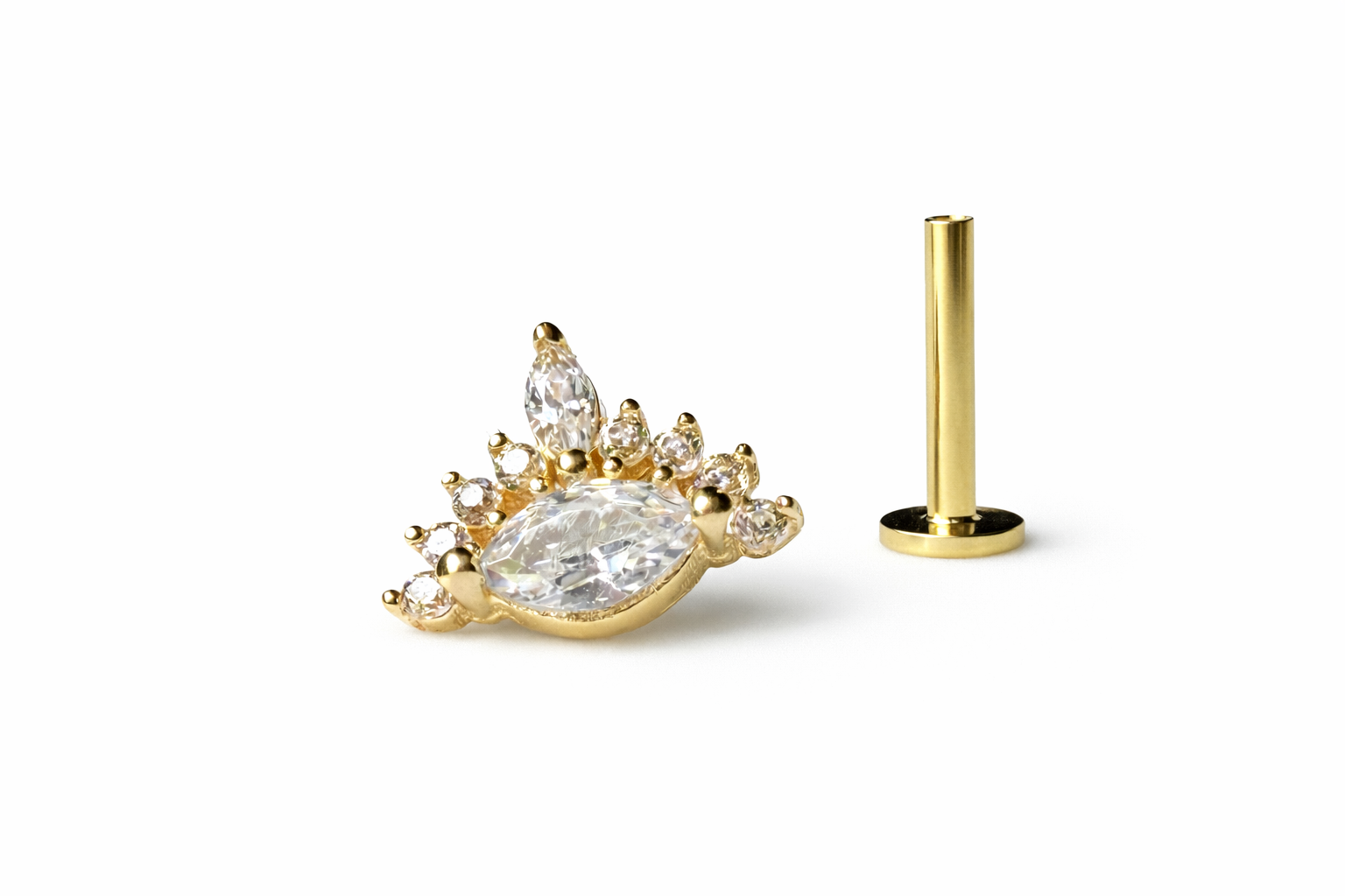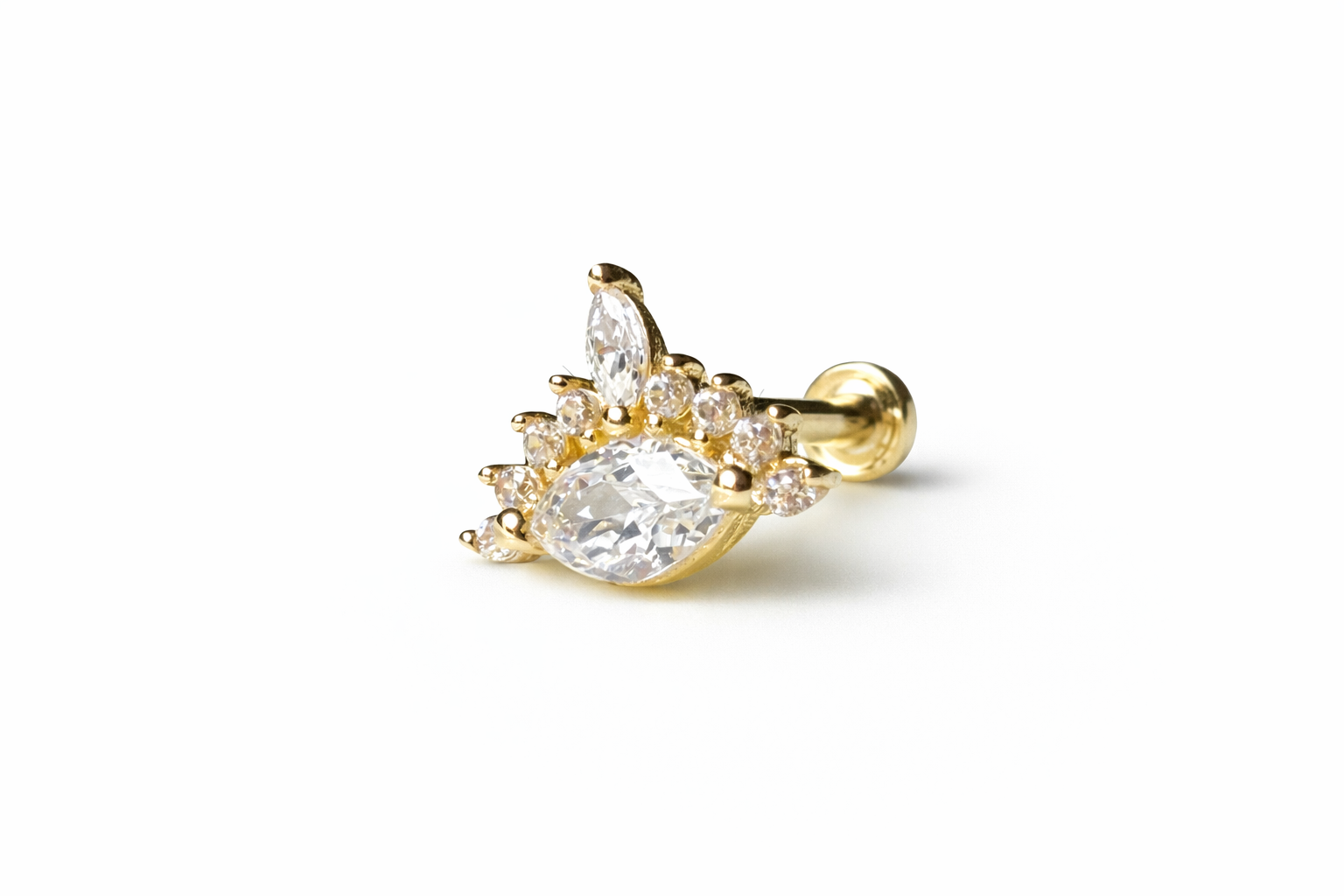 14 Ayar Altın Taç Piercing – Tragus & Helix Uyumlu Aurora Model