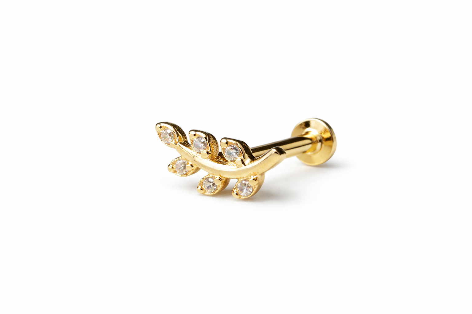 14 Ayar Altın Yaprak Piercing – Aurora Model (Tragus Uyumlu)