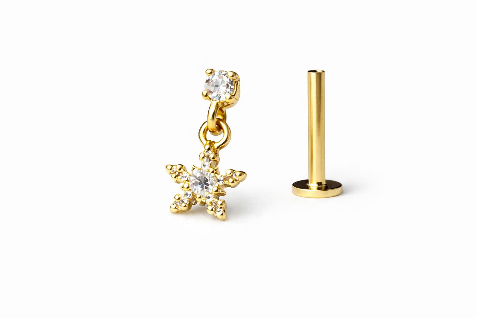 14 Ayar Altın Sallantılı Yıldız Tragus Piercing – Aurora Star Drop Model Helix Uyumlu