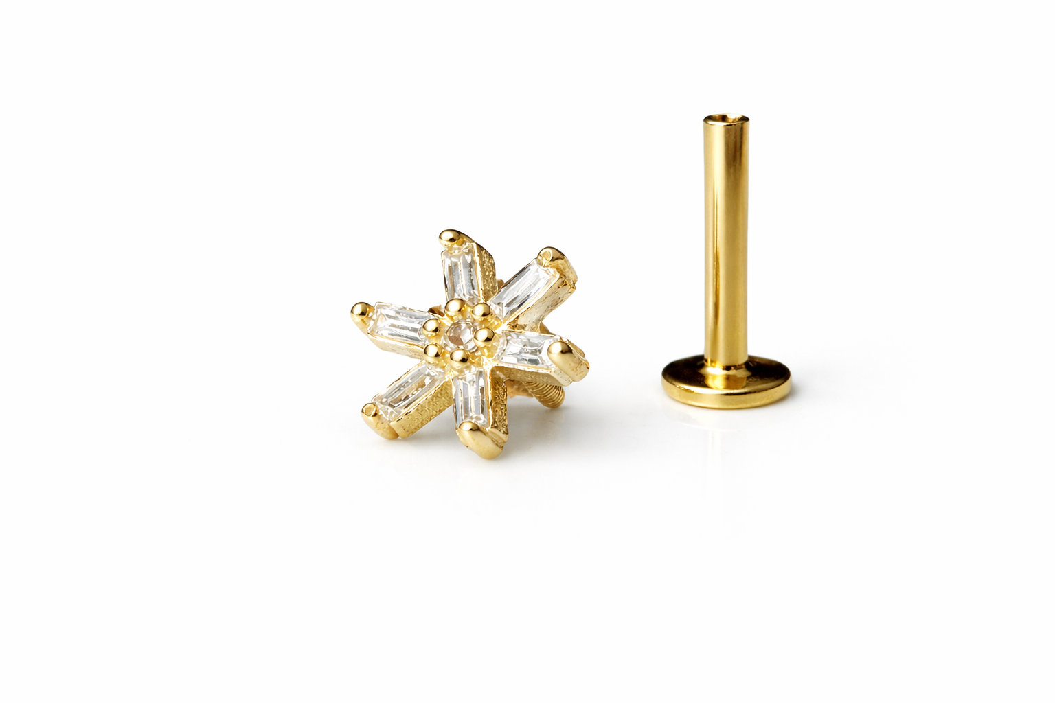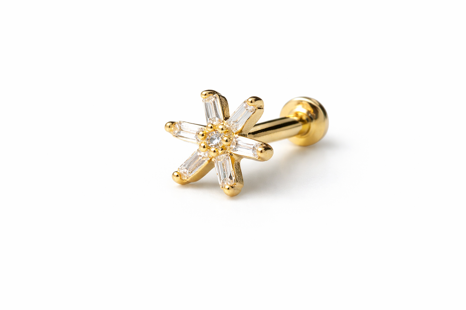 14 Ayar Altın Kar Tanesi Baget Taşlı Piercing – Tragus & Helix Uyumlu