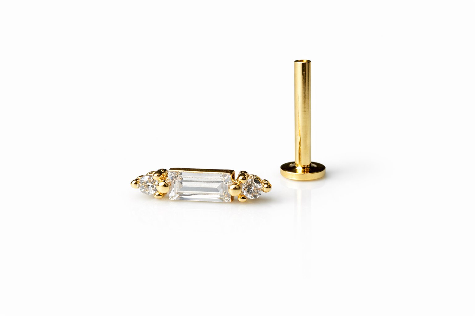 14 Ayar Altın Baget Taşlı Piercing – Tragus & Helix Uyumlu