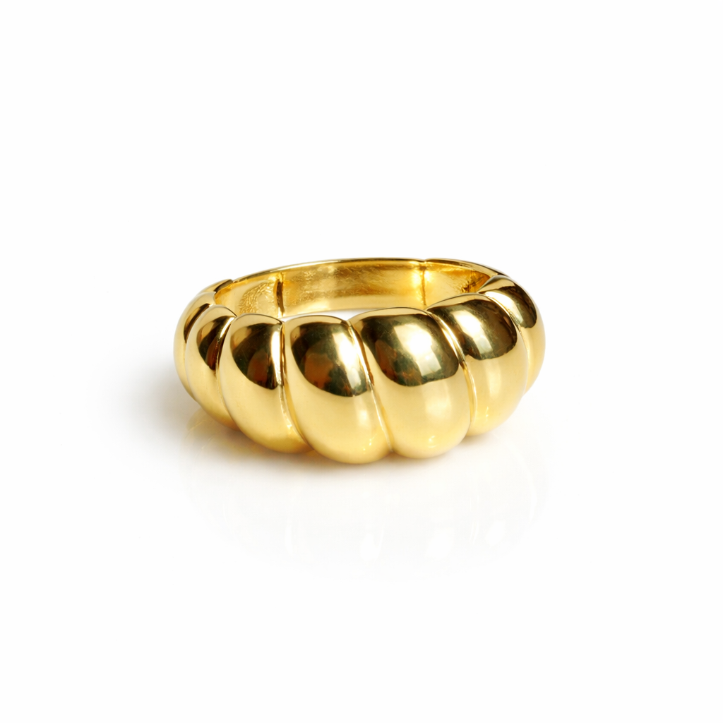 14 Ayar Altın Bombeli Burgu Midye Yüzük – Şık ve Zarif Tasarım