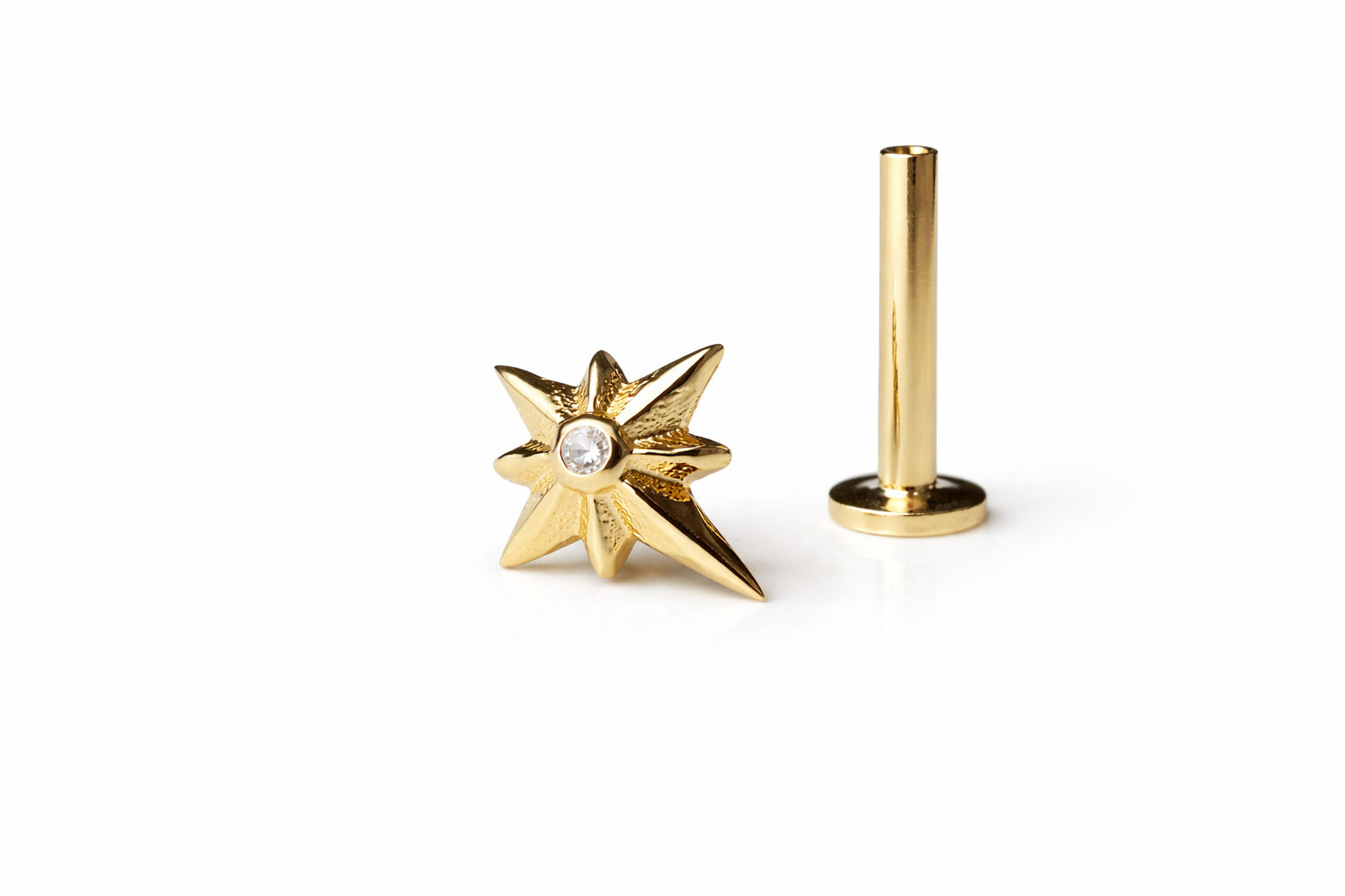 14 Ayar Altın Kutup Yıldızı Piercing – Tragus & Helix Uyumlu