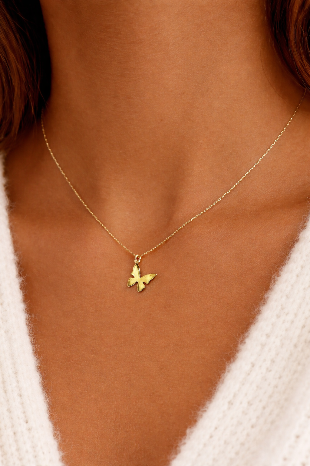 14 Ayar Altın Kelebek Kolye – Minimal Zarif Hediye