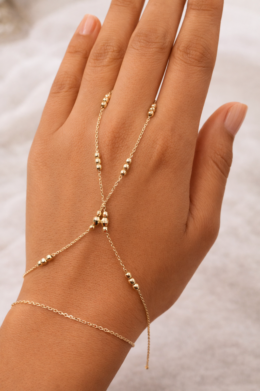 Şahmeran, bilekten parmağa uzanan zarif zincir tasarımıyla dikkat çeken özel bir takı modelidir. Modern ve estetik görünümüyle öne çıkan Şahmeran, 14 ayar altın yapısı sayesinde hem dayanıklı hem de şık bir kullanım sunar. Zarif zincir detaylarıyla tasarlanan Şahmeran, el üzerinde dikkat çekici ve zarif bir stil oluşturur. Minimal ama etkileyici tasarımıyla Şahmeran, takı koleksiyonlarının özgün parçalarından biridir.