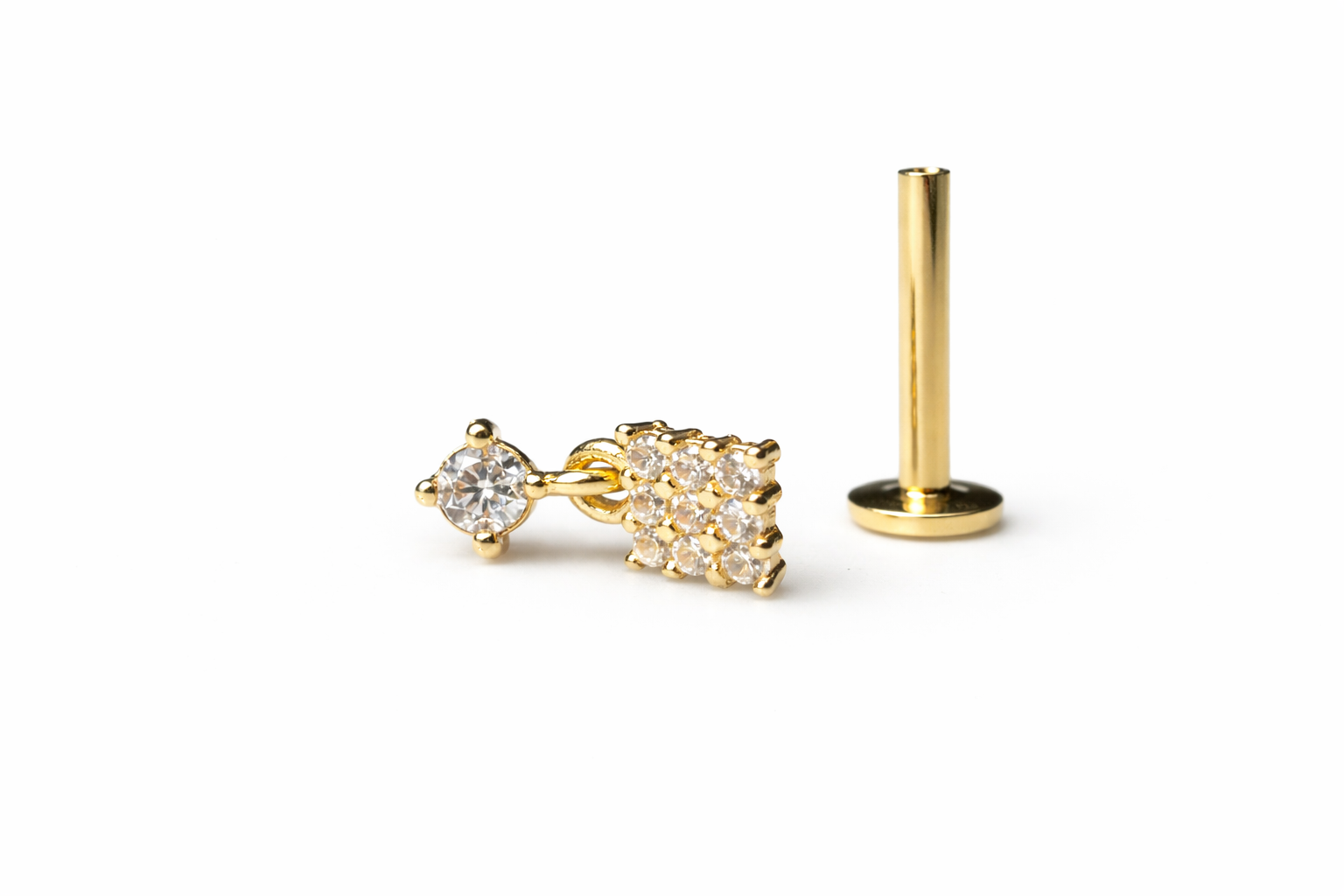 14 Ayar Altın Sallantılı Flat Piercing – Tragus & Helix Uyumlu