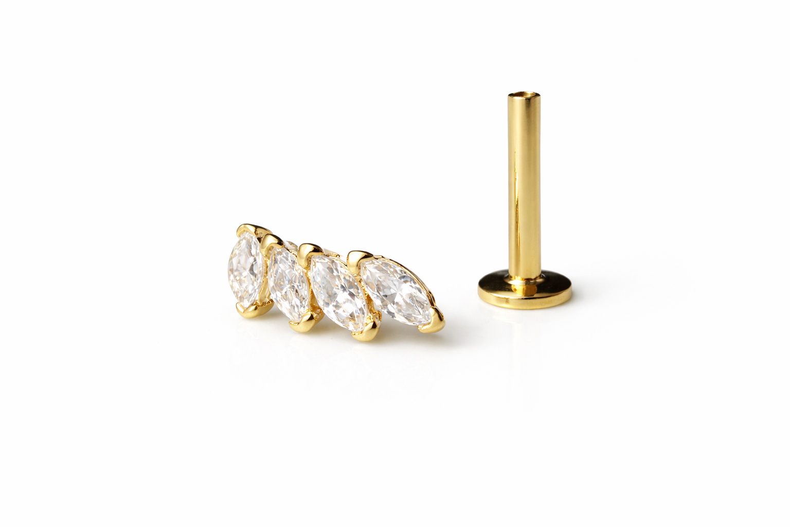14 Ayar Altın Sıralı Markiz Kesim Zirkon Taşlı Piercing – Tragus & Helix Uyumlu