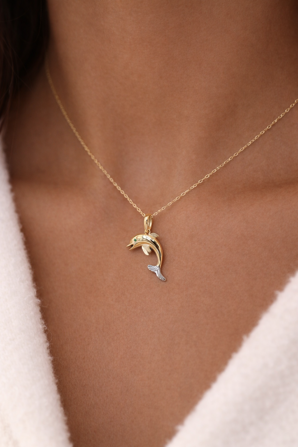 14 Ayar Altın Yunus Şans Kolyesi – Anlamlı ve Zarif Tasarım